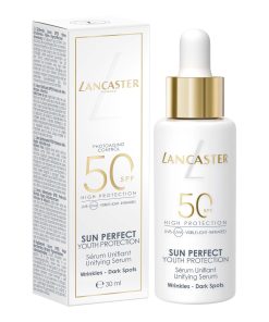 Il nuovo Sun Perfect Unifying Serum SPF50 di Lancaster, il brand prestige di prodotti solari N. 1 in Europa, contrasta i segni del fotoinvecchiamento. È un potente concentrato dotato di protezione solare ad ampio spettro con un’efficacia riparatrice e anti-età.